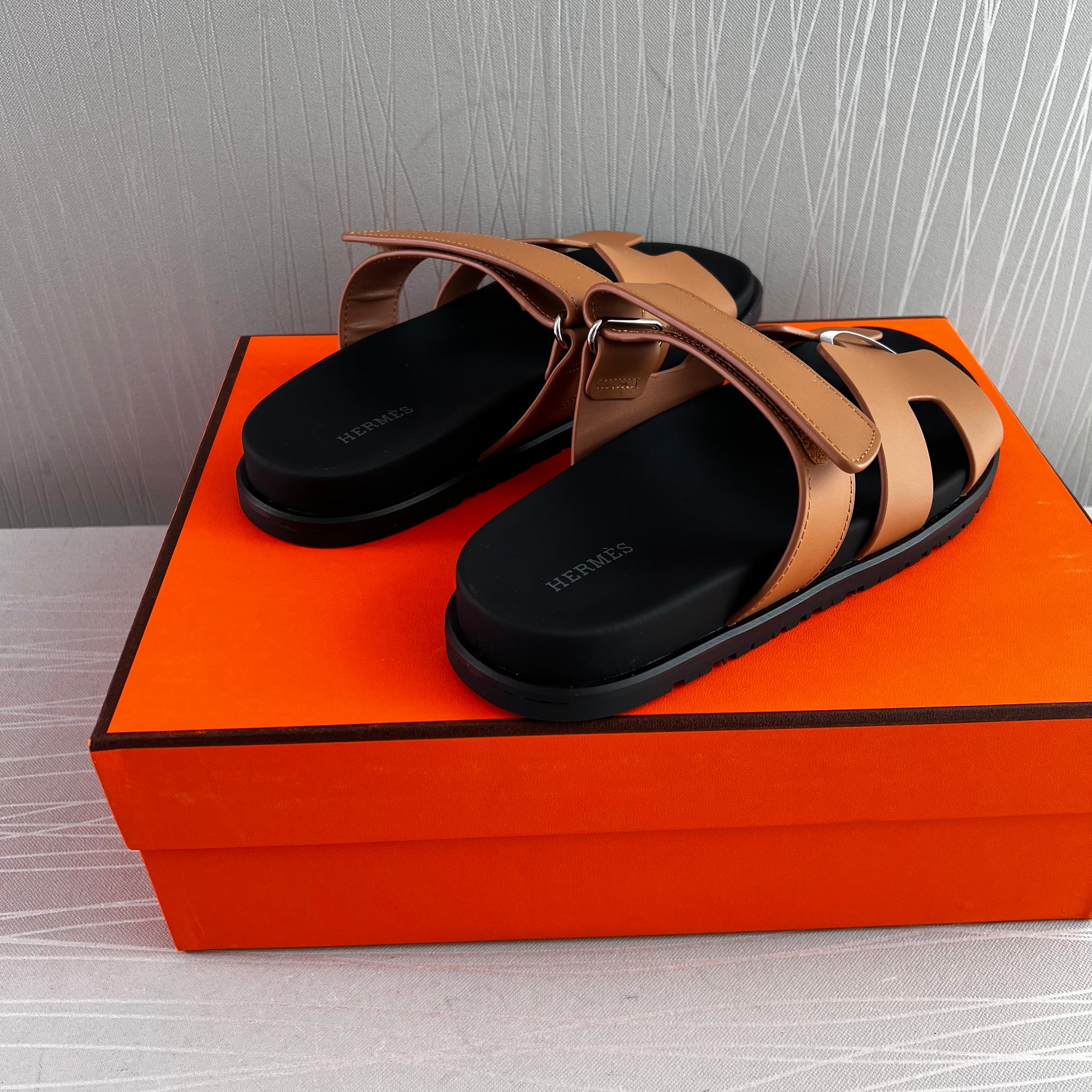 Sandalias piel camel combinada con suela en color negro. Incluye cubre polvos y caja.