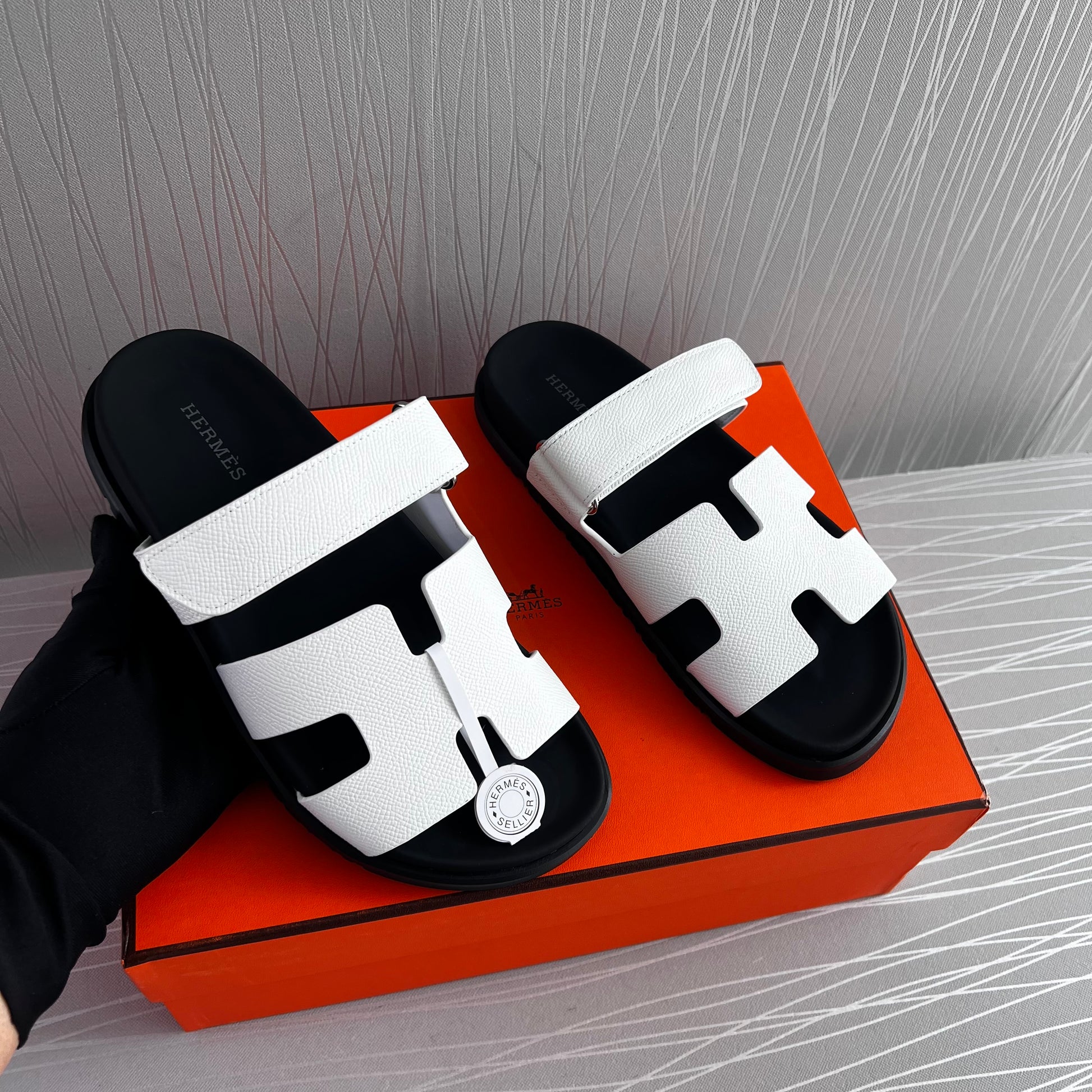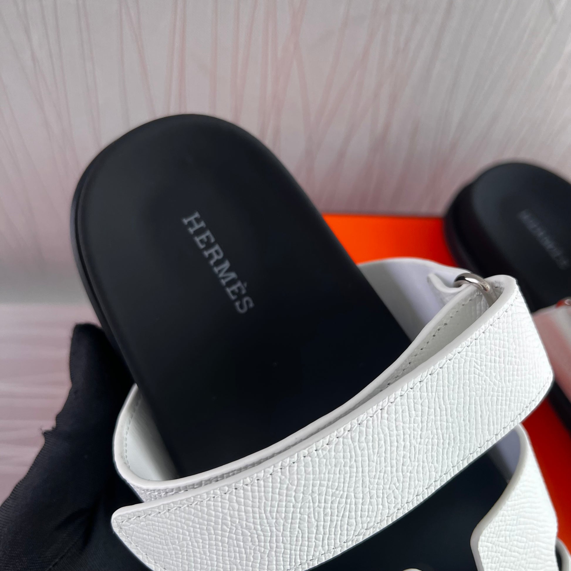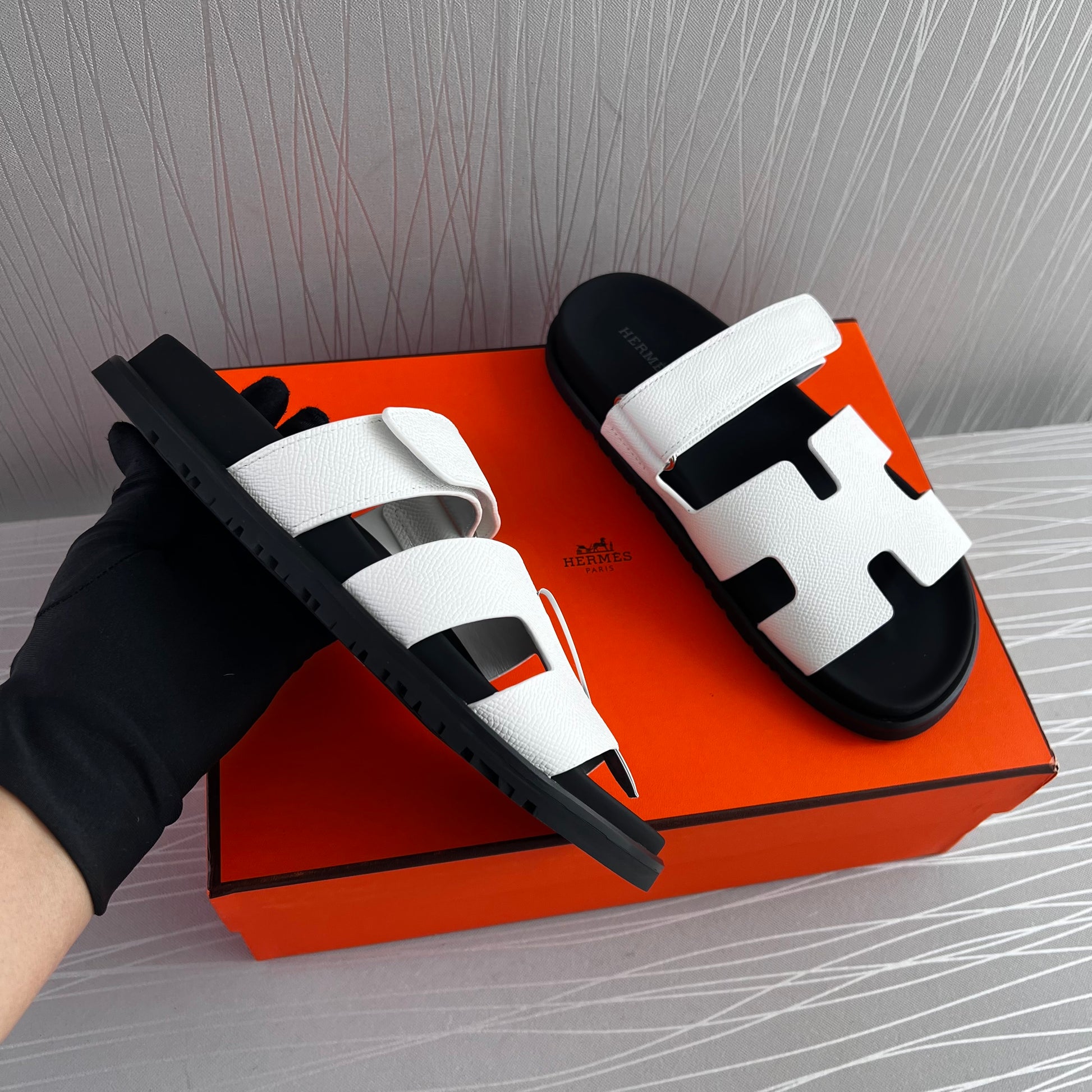 Sandalias en piel grained color blanco con suela en negro. Incluye caja y cubre polvos.