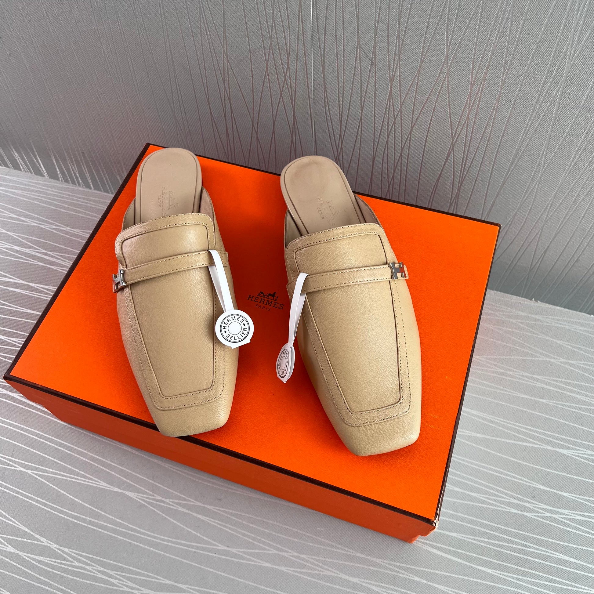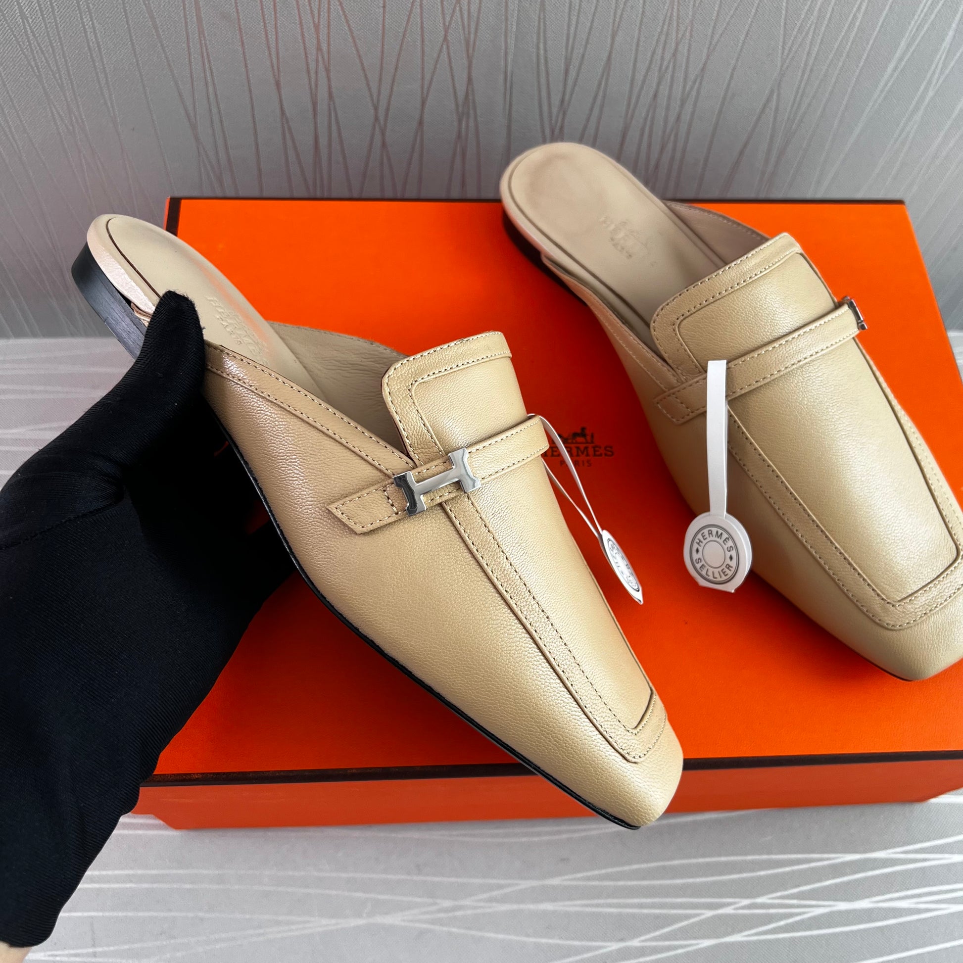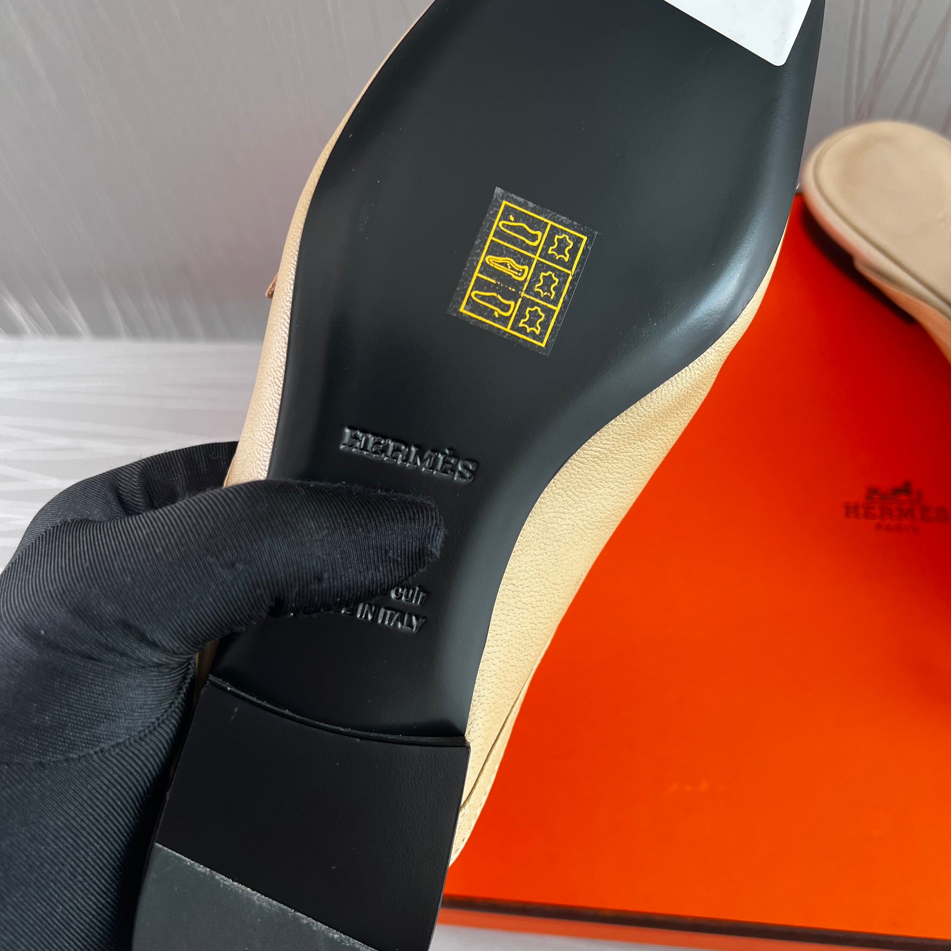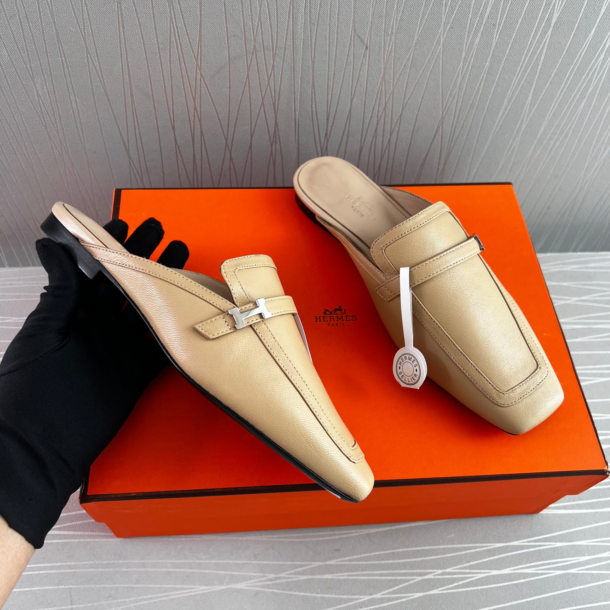 Sleepers piel beige con herrajes en color plata. Incluye caja y cubrepolvos.