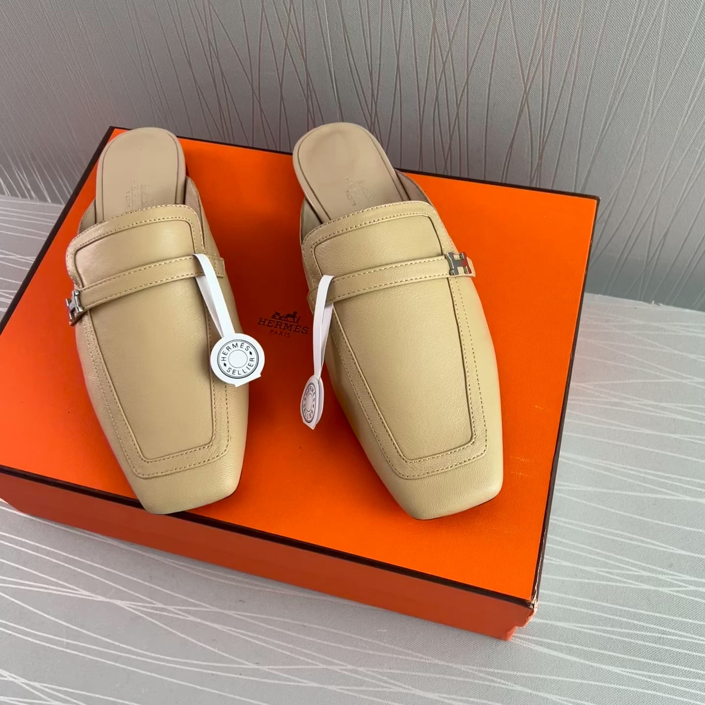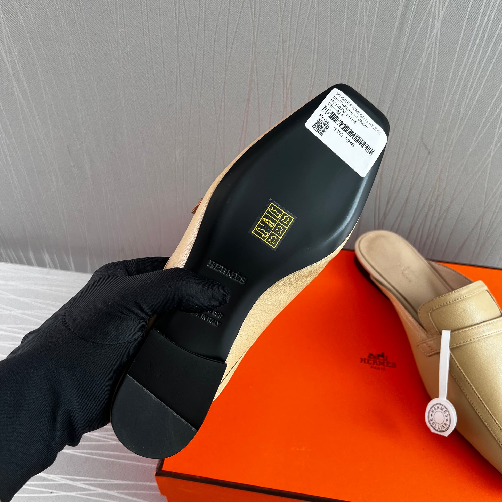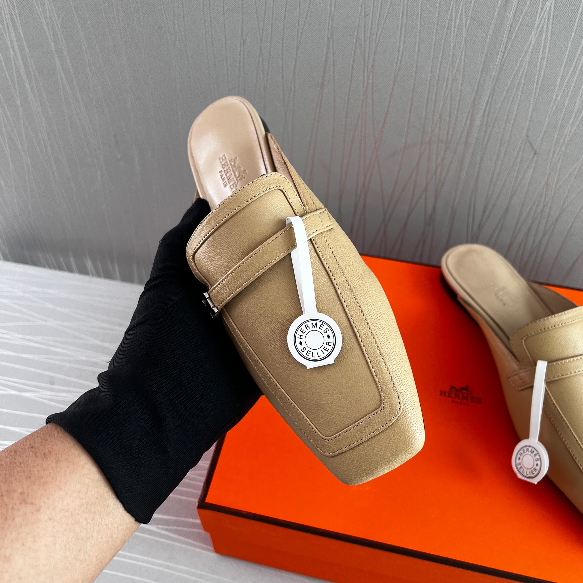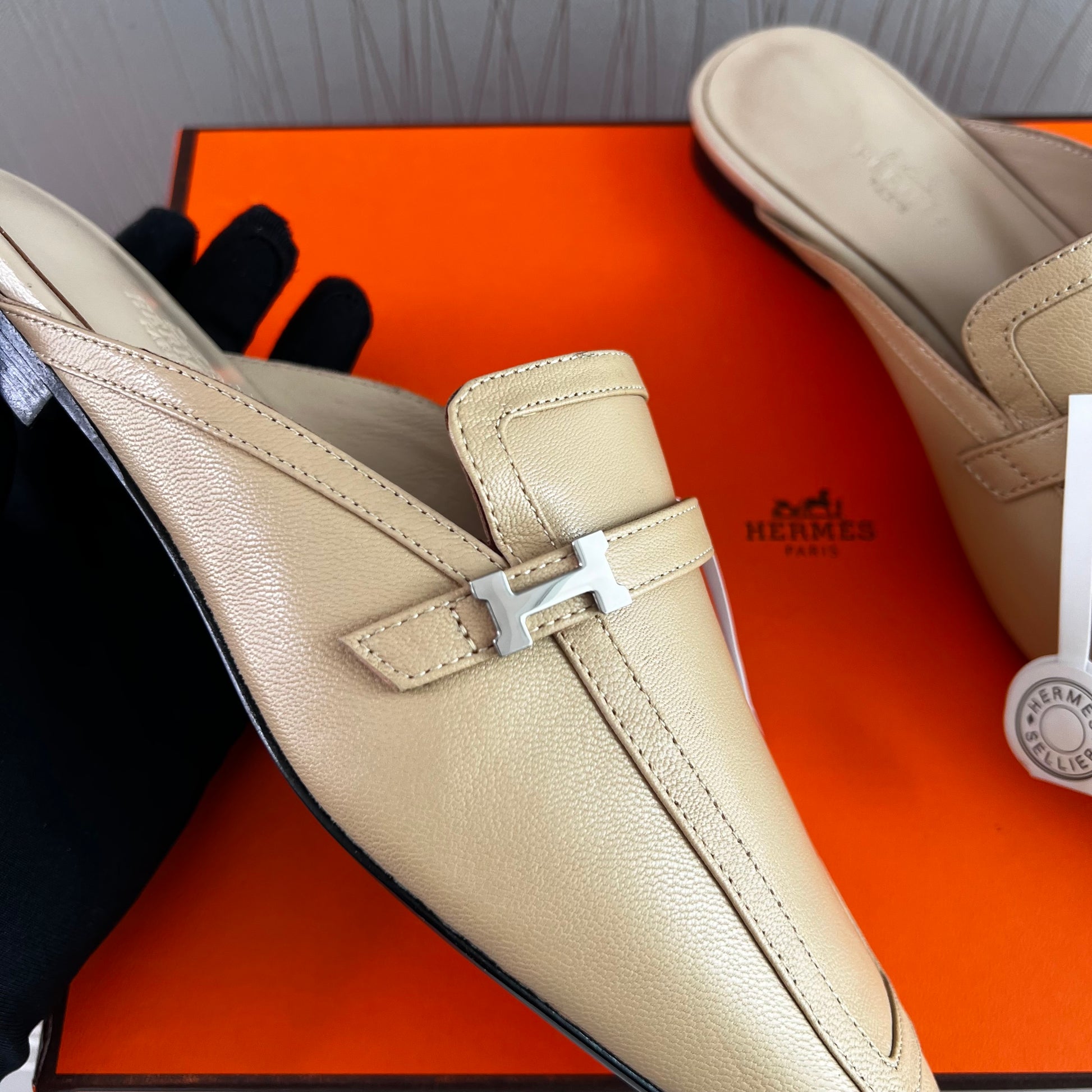 Sleepers piel beige con herrajes en color plata. Incluye caja y cubrepolvos.