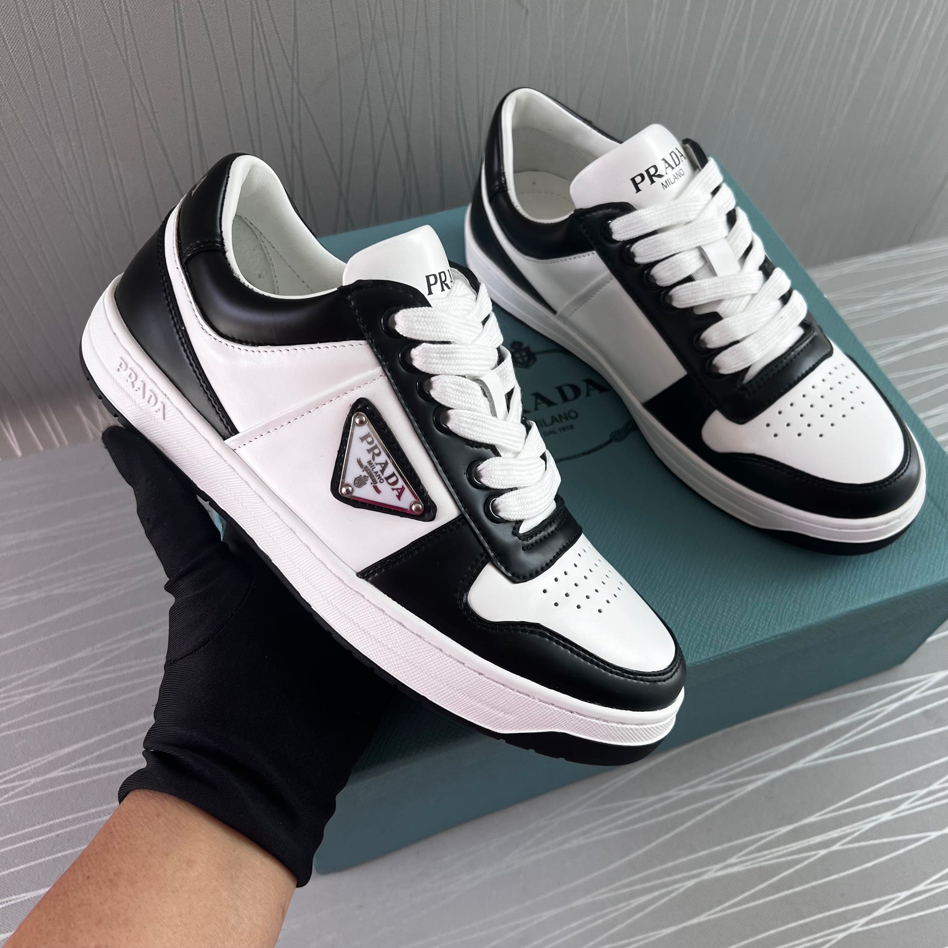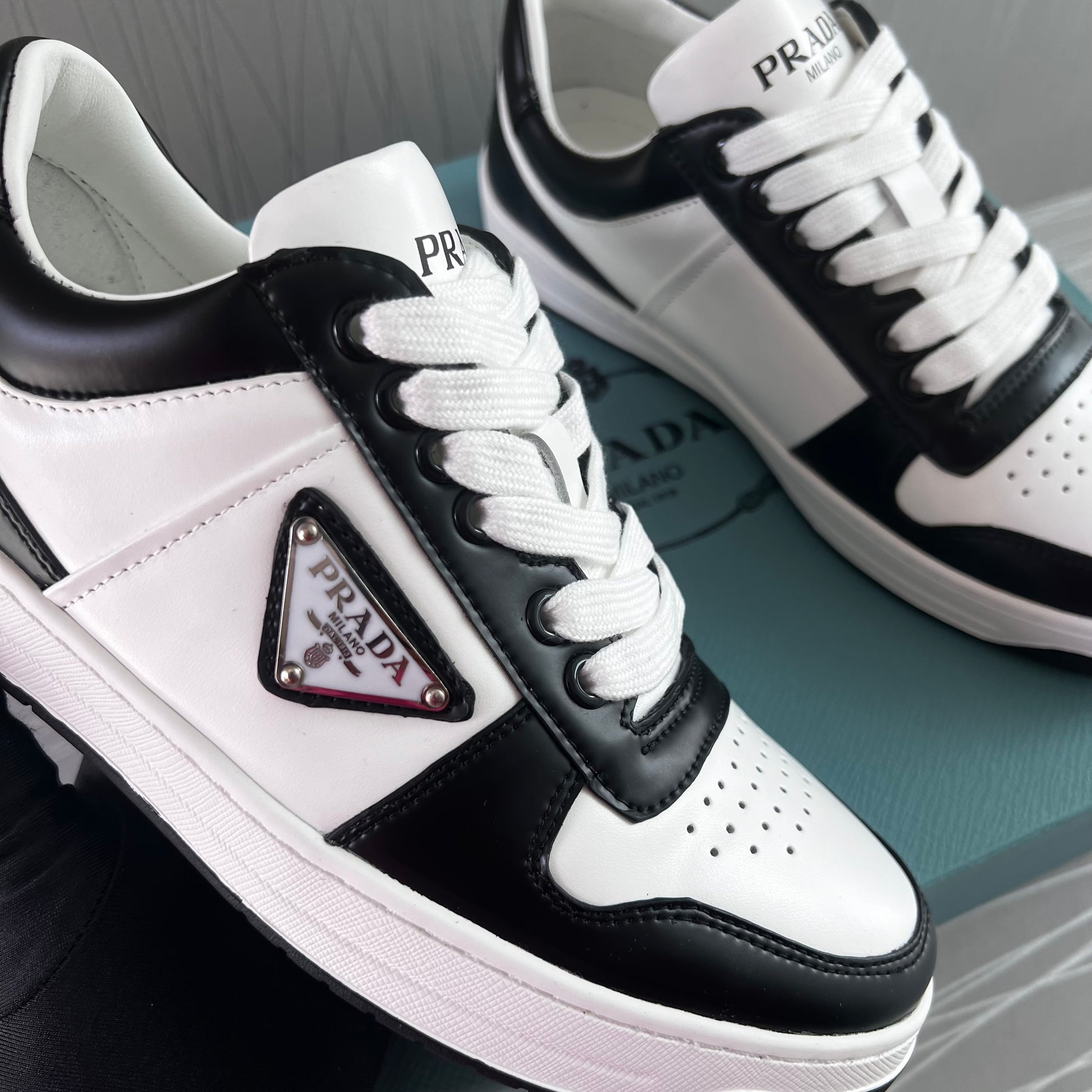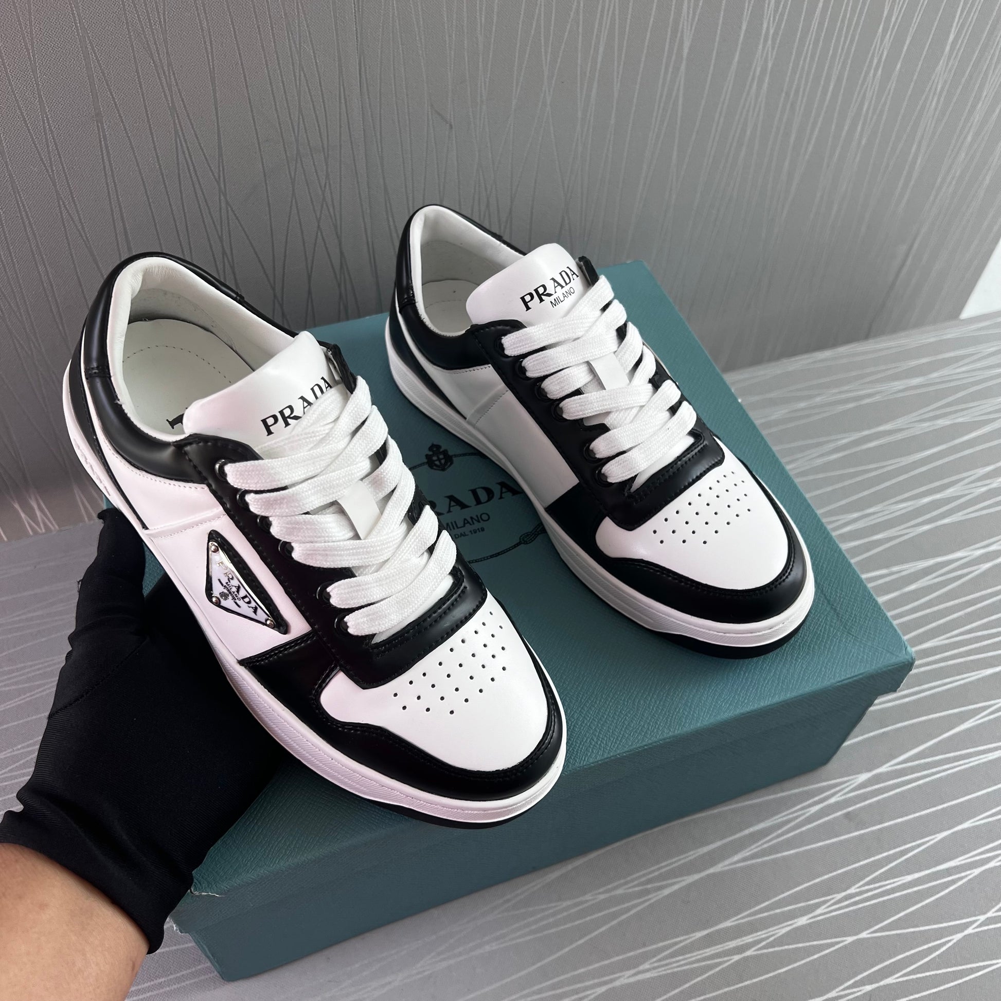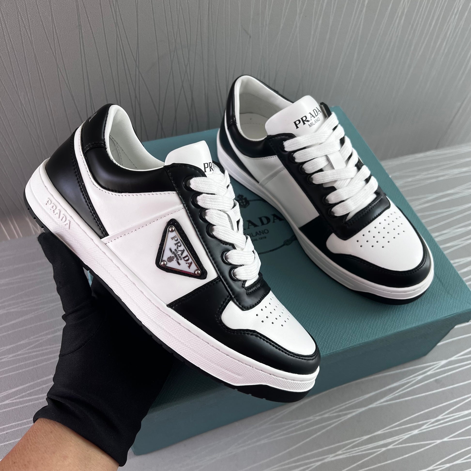 Sneakers P piel en color blanco con negro.Incluye caja y cubrepolvo.