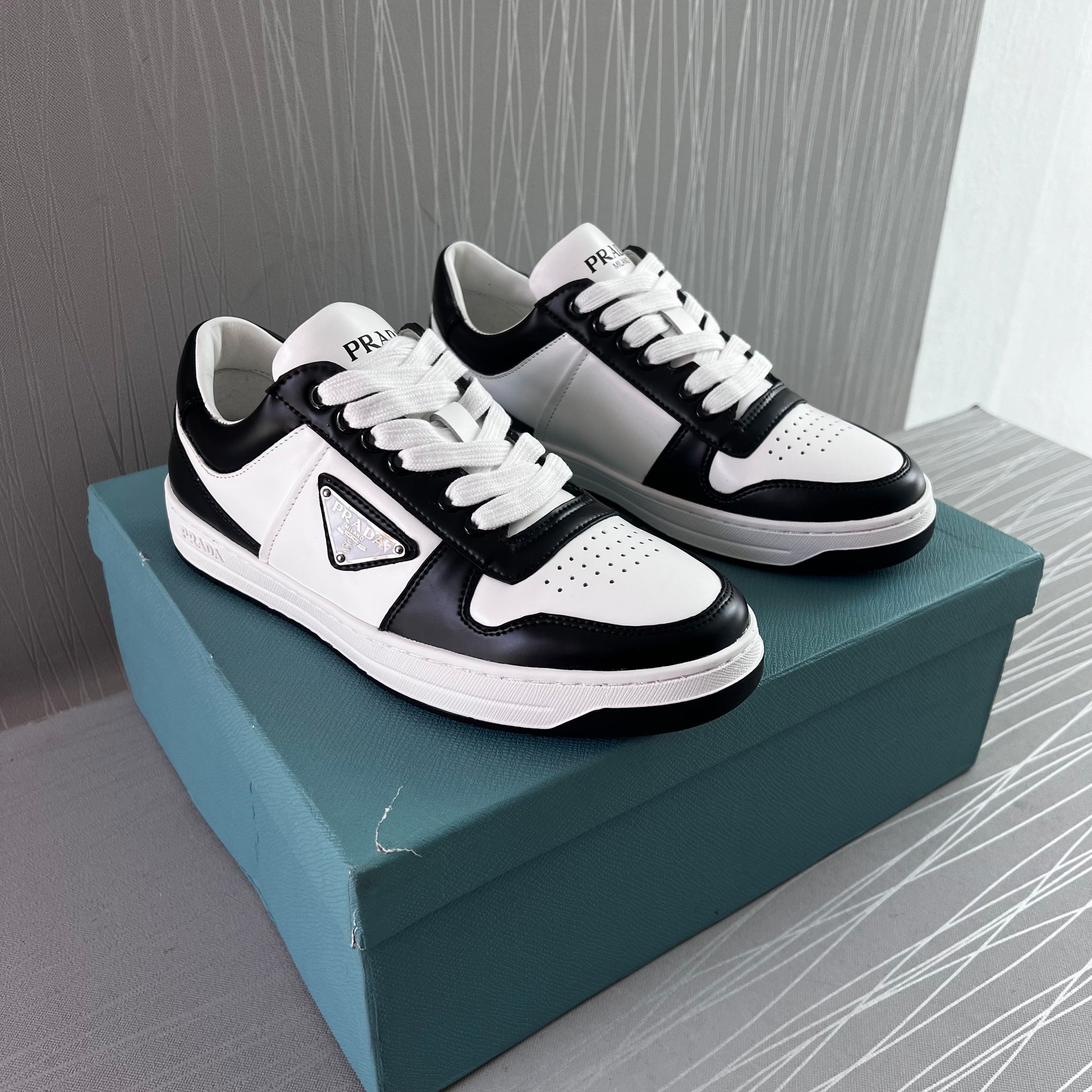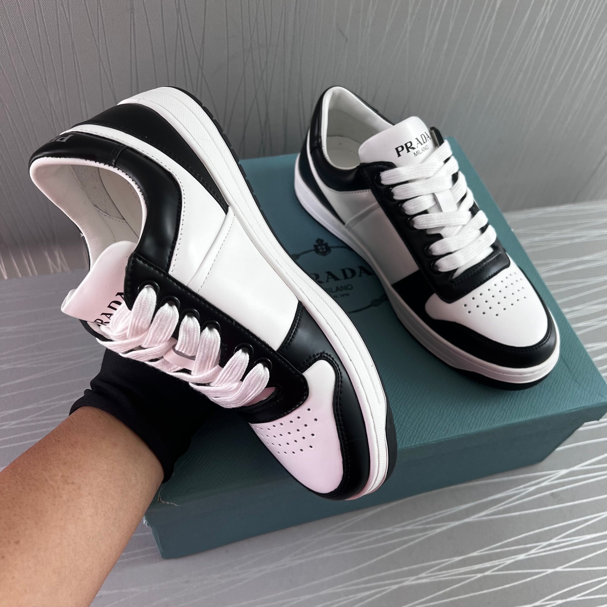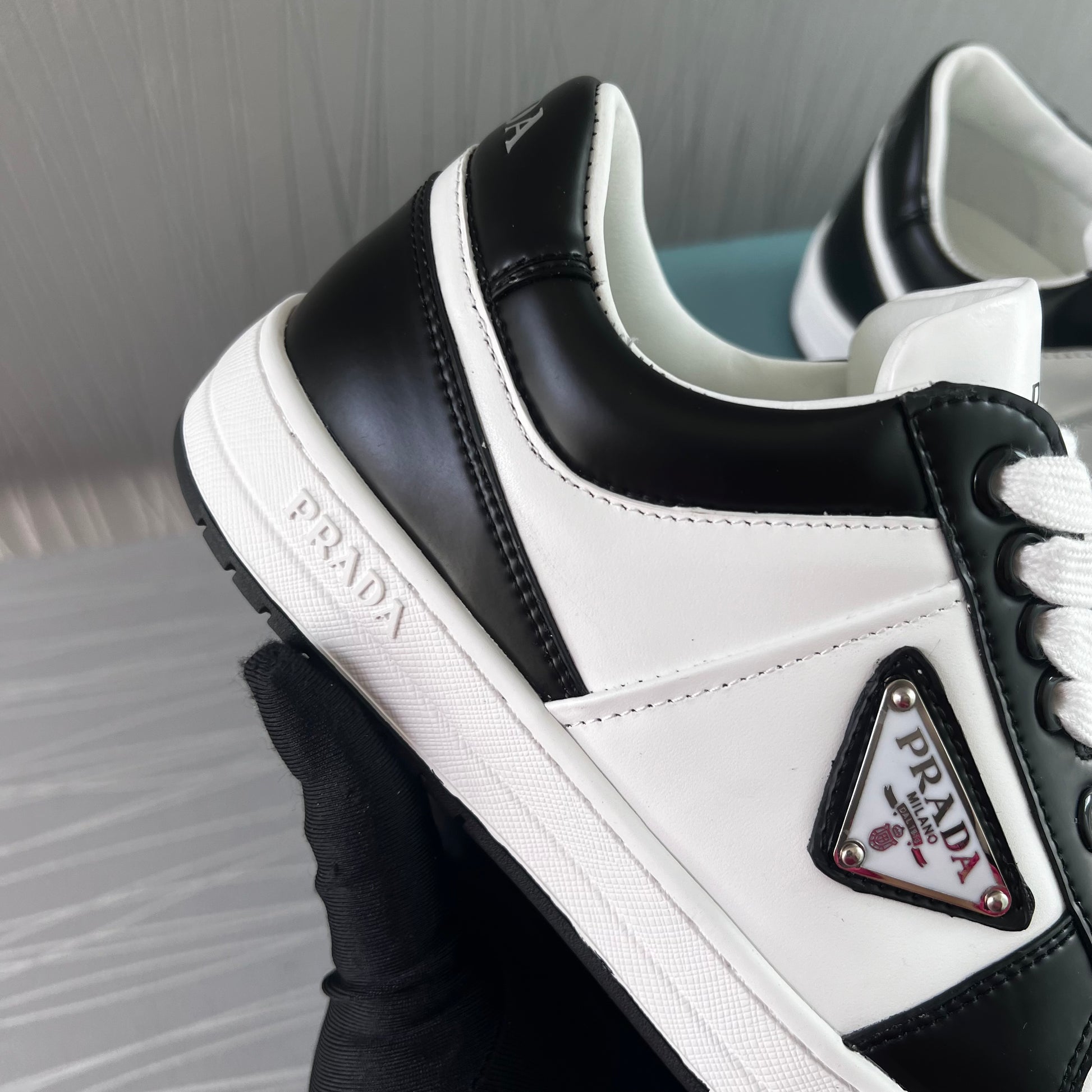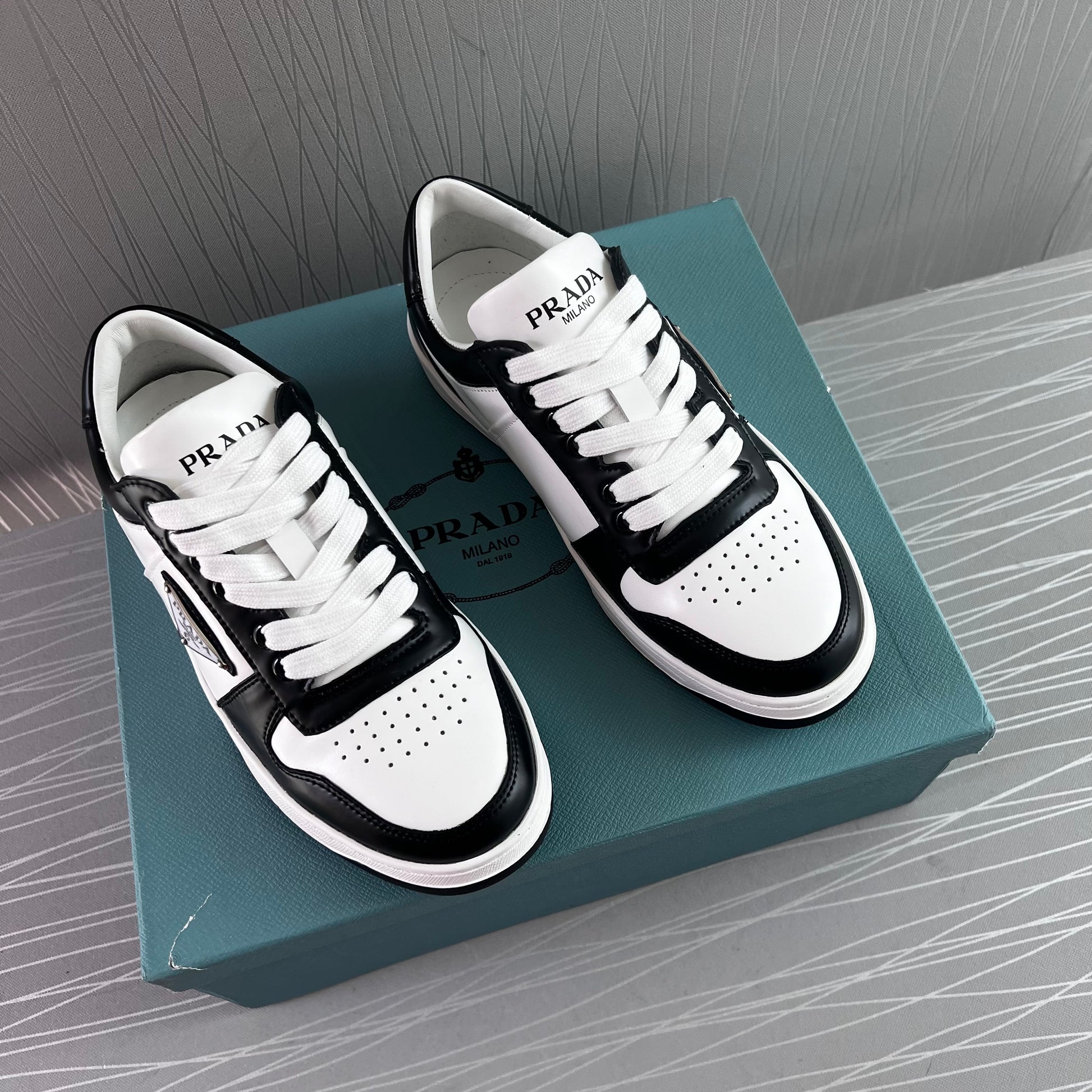 Sneakers P piel en color blanco con negro.Incluye caja y cubrepolvo.