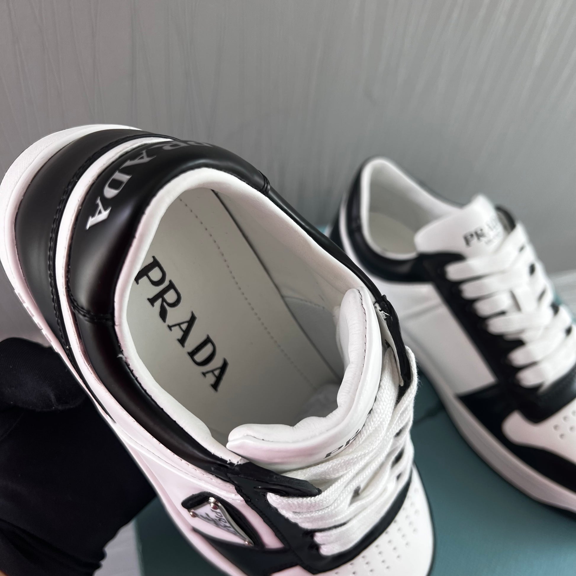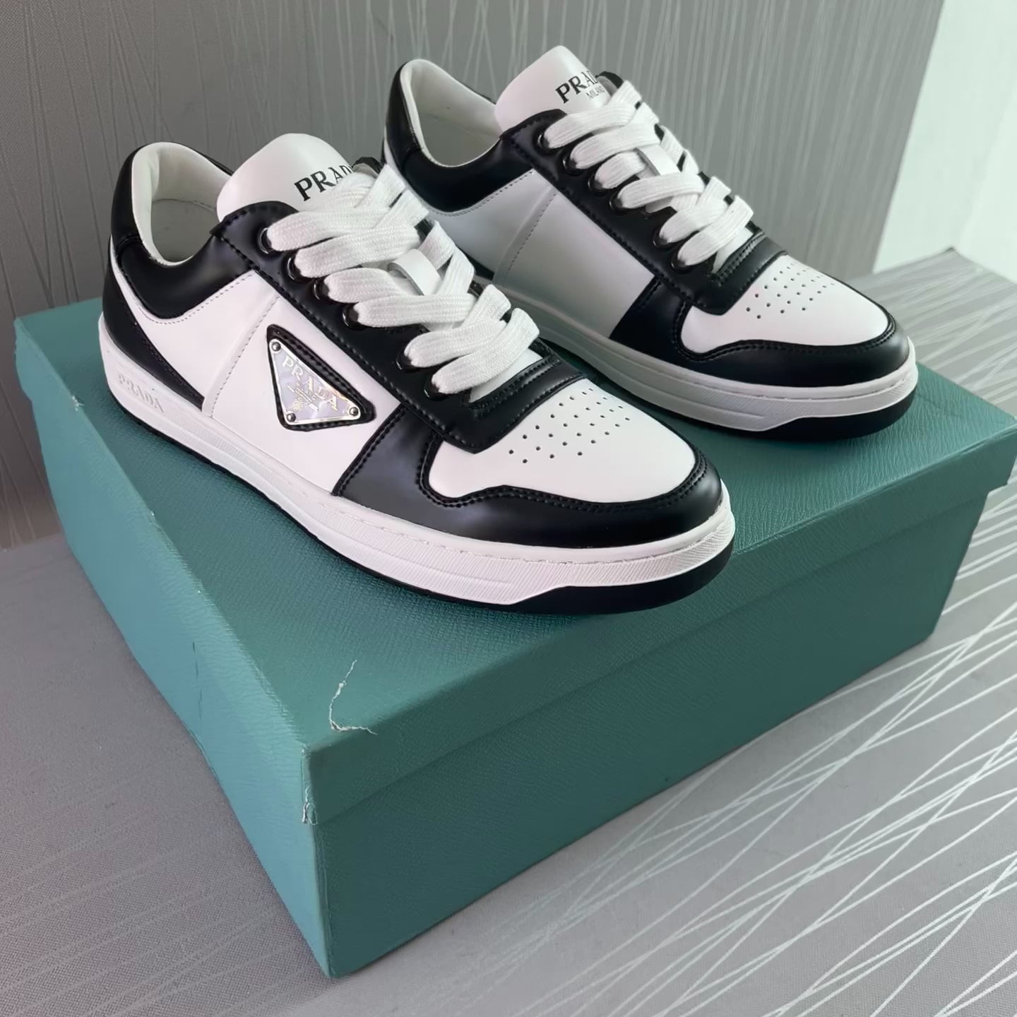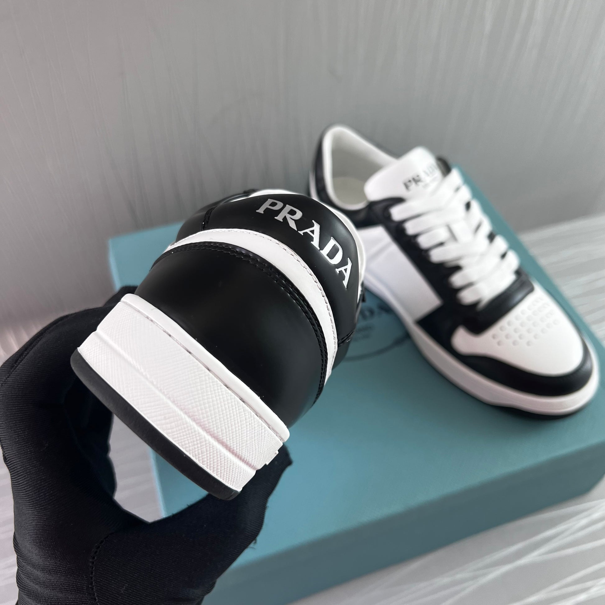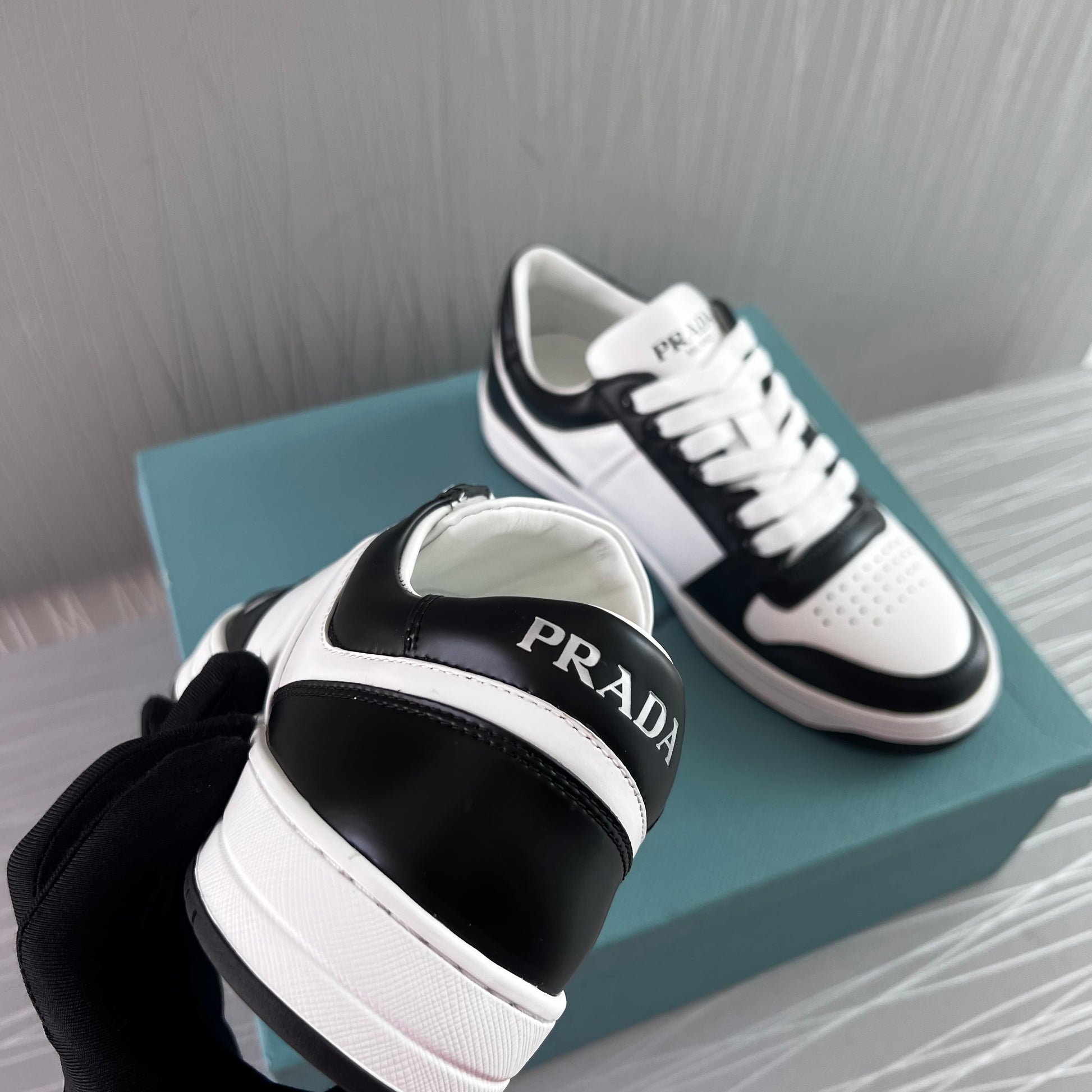 Sneakers P piel en color blanco con negro.Incluye caja y cubrepolvo.