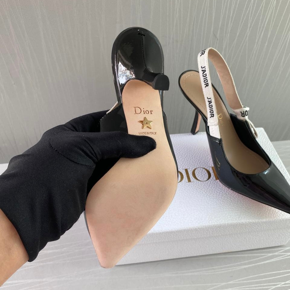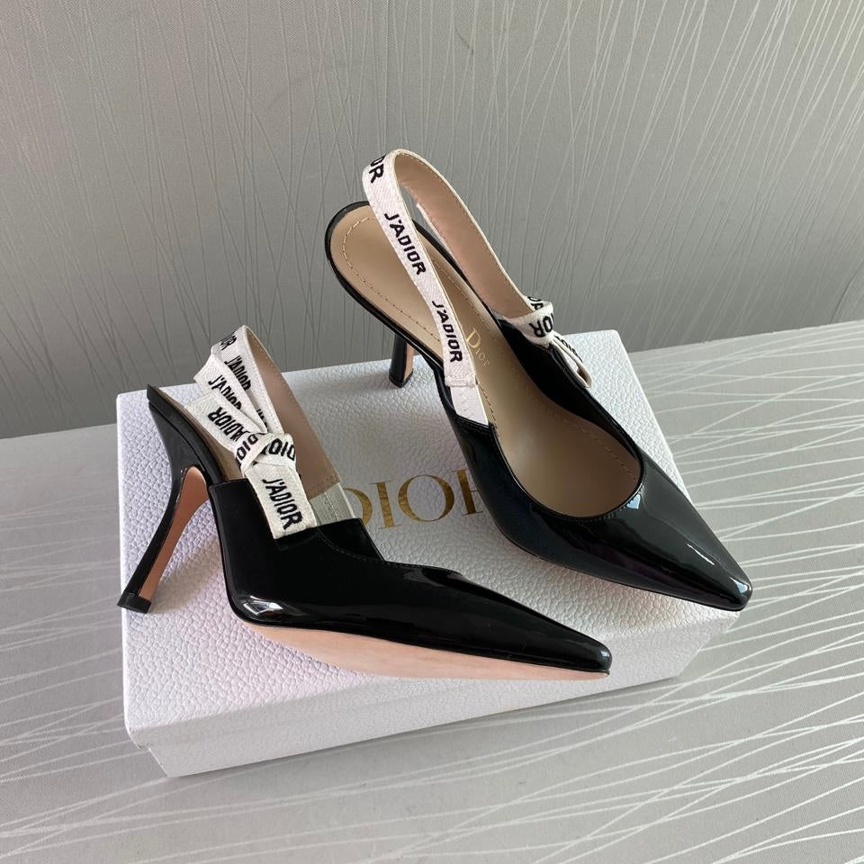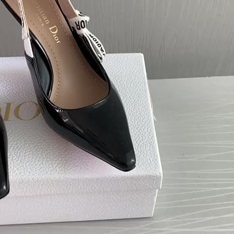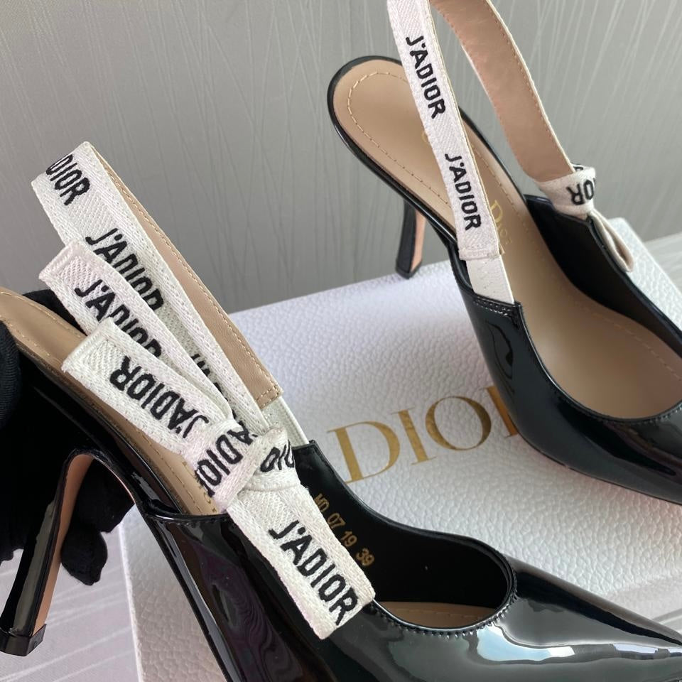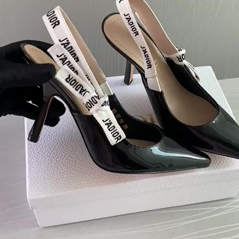 Zapatilla en charol color negro, tacón de 10 cm de altura. Incluye caja y guardapolvos.