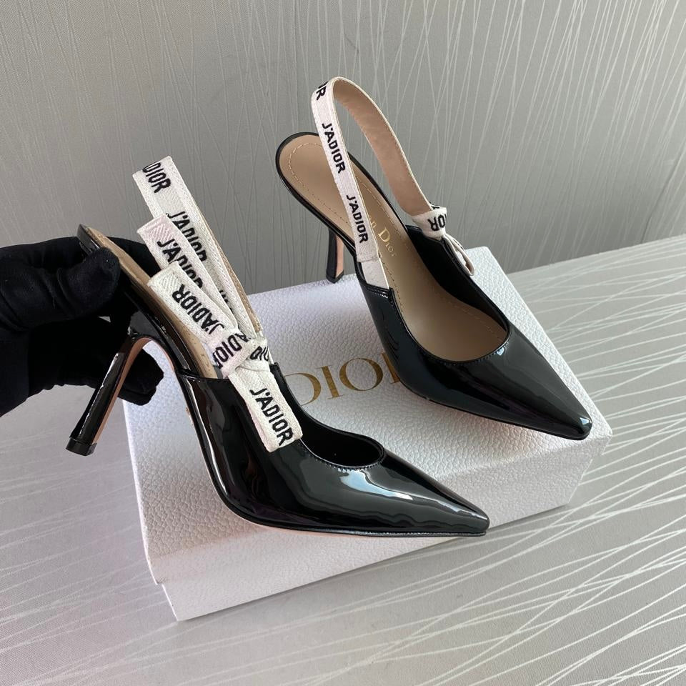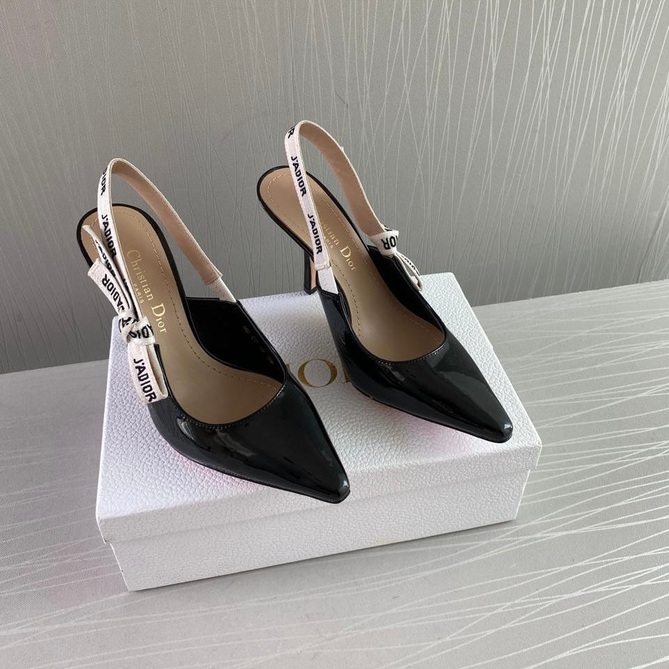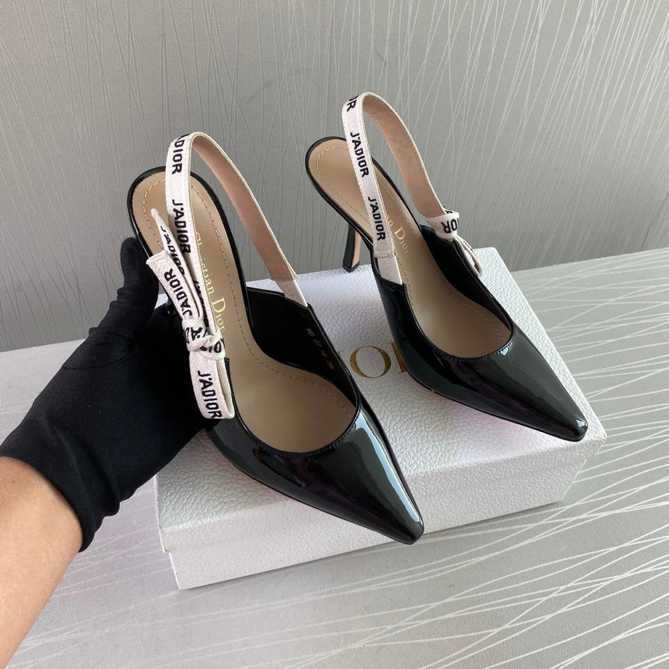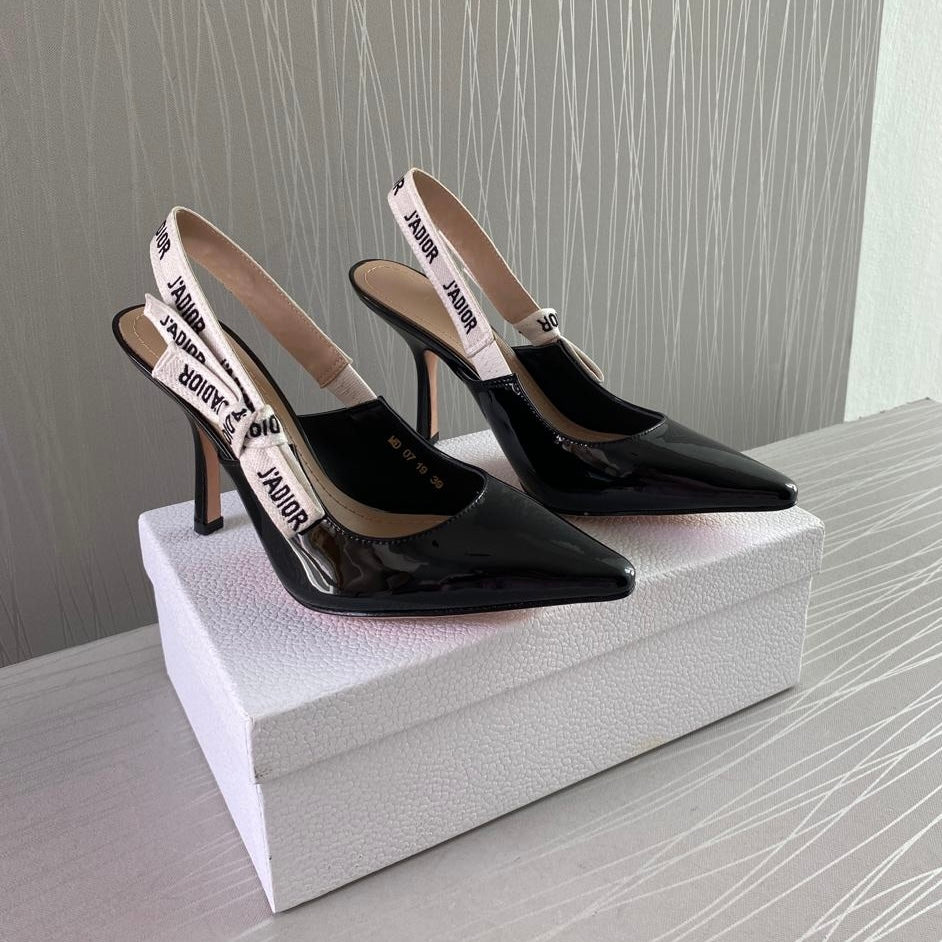 Zapatilla en charol color negro, tacón de 10 cm de altura. Incluye caja y guardapolvos.